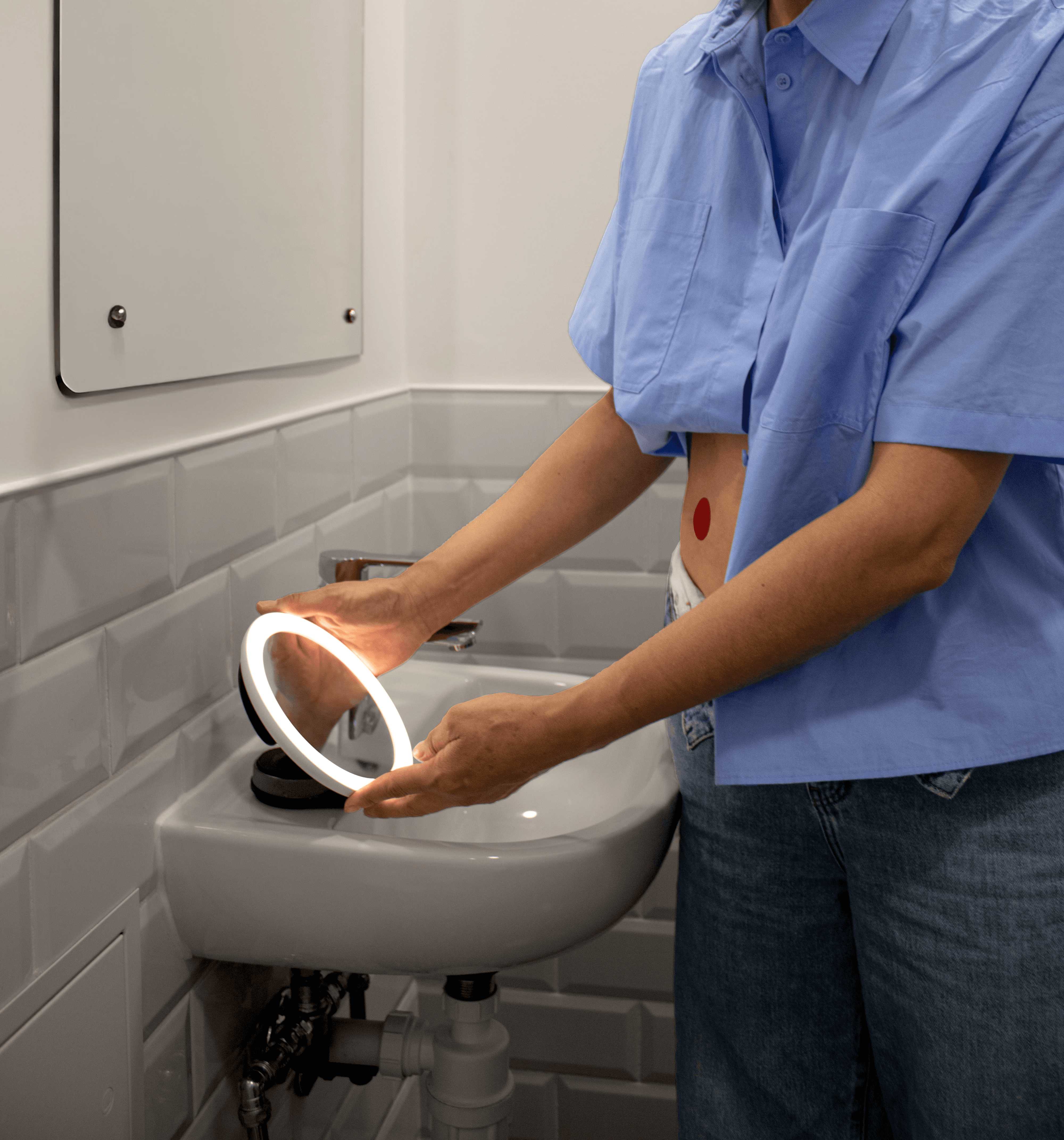 The combination of its flexible structure, medical lighting, and thoughtful design makes it the first assistive mirror created specifically for colostomy bag changes.